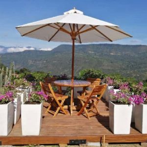 JUEGO DE COMEDOR EXTERIOR CON SOMBRILLA EN MADERA 2.5mt